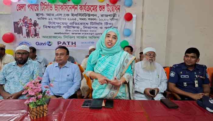 রাজবাড়ীতে টাইফয়েড প্রতিরোধে টিকা (টিসিভি) প্রদান কার্যক্রমের উদ্বোধন অনুষ্ঠিত হয়েছে।