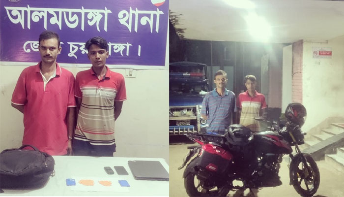 পুলিশ সূত্রে জানা যায়, মঙ্গলবার দিবাগত রাতে আলমডাঙ্গা থানার ভারপ্রাপ্ত কর্মকর্তা (ওসি) মাসুদুর রহমানের নেতৃত্বে পাইকপাড়া ক্যাম্পের ইনচার্জ আব্দুল মতিন সঙ্গীয় ফোর্সসহ গোপন সংবাদের ভিত্তিতে উপজেলার পারকুলা (আবাসন প্রকল্প) সংলগ্ন পাকা রাস্তায় একটি মোটরসাইকেলকে গতিরোধ করেন।