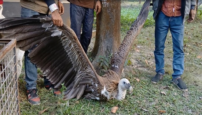 কুড়িগ্রাম জেলার নাগেশ্বরীর ভিতরবন্দ সুকানদিঘী এলাকা থেকে উদ্ধার করা হয়েছে বিশাল আকারের হিমালয় গৃধিনী প্রজাতির শকুন।
