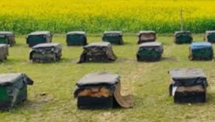 সিরাজগঞ্জে রবি মৌসূমে মাঠ জুড়ে সরিষার হলুদ ফুলের সমারোহ সৃষ্টি হয়েছে। এসব সরিষা ক্ষেতে ইতোমধ্যেই মৌ চাষীরা মধু সংগ্রহের বাক্স স্থাপন করেছে। এবার মধু সংগ্রহের লক্ষ্যমাত্রা অর্জিত হবে বলে আশা করা যাচ্ছে।