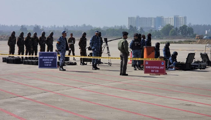 এটি কোনো সিনেমার দৃশ্য নয়, বরং কক্সবাজার বিমানবন্দরে প্রথমবারের মতো আয়োজিত একটি বিশাল নিরাপত্তা মহড়ার খণ্ডচিত্র।