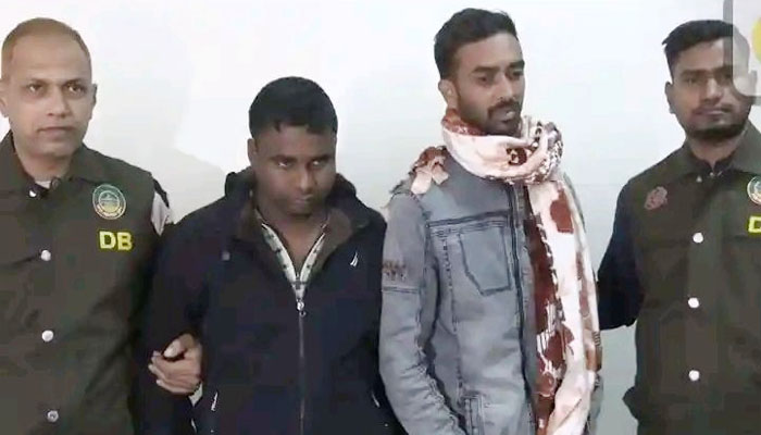 আটক দুজন হলেন রংপুরের মিঠাপুকুর উপজেলার কাফ্রিখাল এলাকার শরিফুল ইসলামের ছেলে গোলাম কিবরিয়া এবং গোপাল চন্দ্রের ছেলে সুমন চন্দ্র।