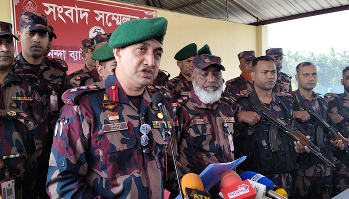 শুক্রবার (৯ জানুয়ারি) বেলা ১১টায় ৫৯ বিজিবি’র সদর দপ্তরে আয়োজিত এক সংবাদ সম্মেলনে এ তথ্য নিশ্চিত করেন ব্যাটালিয়নটির অধিনায়ক লে. কর্নেল গোলাম কিবরিয়া।