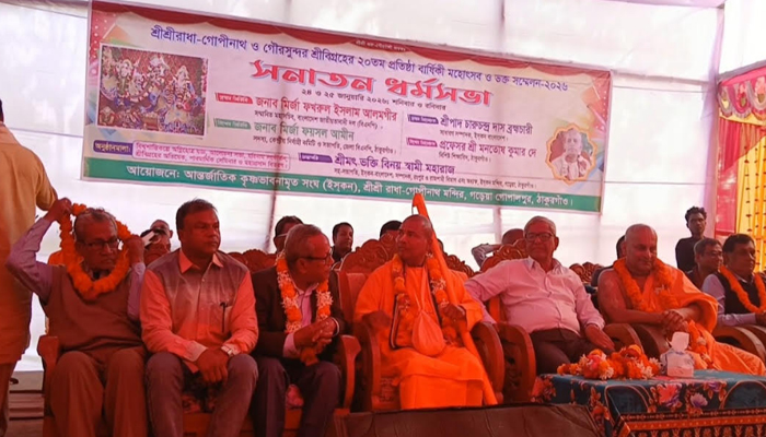 হিন্দু ধর্মালম্বীদের উদ্দেশ্যে তিনি বলেন, আপনারা আগে নিজেরা শক্ত হন, নিজেদের দাঁড়ানোর শক্তি জোগাতে হবে। আমি আপনাদের নিশ্চয়তা দিতে চাই আপনাদের পাশে আছি এবং ভবিষ্যতেও থাকবো।