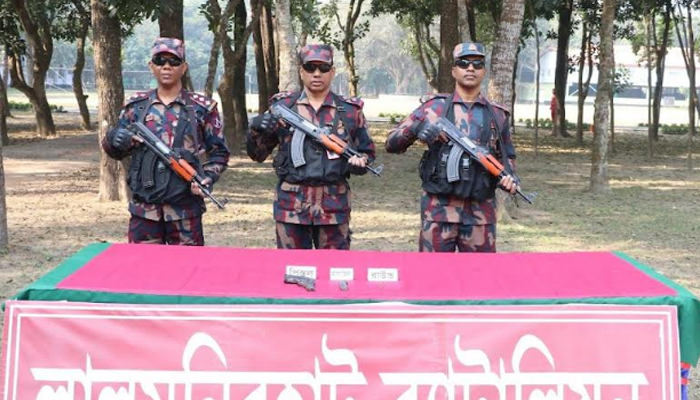 অভিযান চলাকালে পলিথিনে মোড়ানো অবস্থায় যুক্তরাষ্ট্রের তৈরি একটি বিদেশি পিস্তল, একটি ম্যাগাজিন ও এক রাউন্ড গুলি (মালিকবিহীন) উদ্ধার করা হয়। উদ্ধারকৃত অস্ত্র ও গোলাবারুদ আইনানুগ ব্যবস্থা গ্রহণের জন্য লালমনিরহাট সদর থানায় জমা দেওয়ার প্রক্রিয়া চলমান রয়েছে।