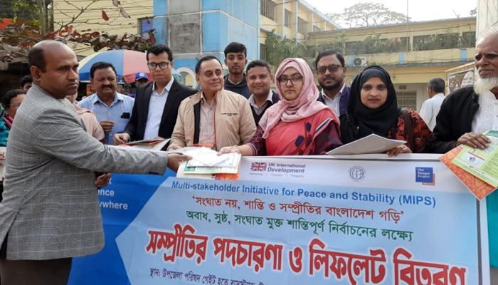 আসন্ন ত্রয়োদশ জাতীয় সংসদ নির্বাচনকে কেন্দ্র করে সহিংসতামুক্ত, শান্তিপূর্ণ ও উৎসবমুখর পরিবেশ বজায় রাখার প্রত্যয়ে ময়মনসিংহের ঈশ্বরগঞ্জে ‘সম্প্রীতির পদচারণা’ ও সচেতনতামূলক লিফলেট বিতরণ কর্মসূচি অনুষ্ঠিত হয়েছে।
