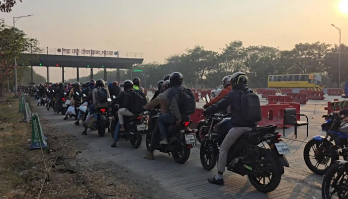 মঙ্গলবার (১০ ফেব্রুয়ারি) সকাল থেকে ঢাকা–মাওয়া এক্সপ্রেসওয়ের পদ্মা সেতু টোলপ্লাজা এলাকায় মোটরসাইকেলের উপচে পড়া ভিড় দেখা গেছে। তবে যাত্রীবাহী বাসের তেমন চাপ না থাকলেও স্থানীয় কয়েকটি পয়েন্টে যাত্রীদের ভোগান্তির অভিযোগ উঠেছে।