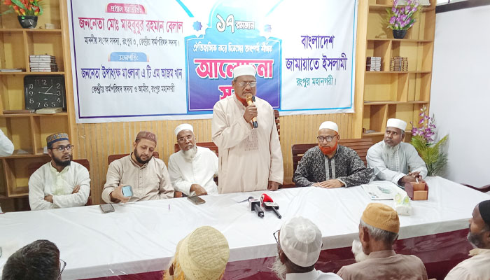 জামায়াতে ইসলামের রংপুর মহানগর সেক্রেটারি আনোয়ারুল হক কাজল-এর সভাপতিত্বে অনুষ্ঠিত আলোচনা সভায় জামায়াতে ইসলামের রংপুর মহানগর সহকারী সেক্রেটারি আল আমীন হাসান, প্রবীন শিক্ষাবিদ শাহ মোহম্মদ নুর হোসাইন, কোতয়ালী থানা সেক্রেটারি কাকসুর সাবেক জিএস আবুল কালাম আজাদ অন্যান্যের মধ্যে বক্তব্য রাখেন।