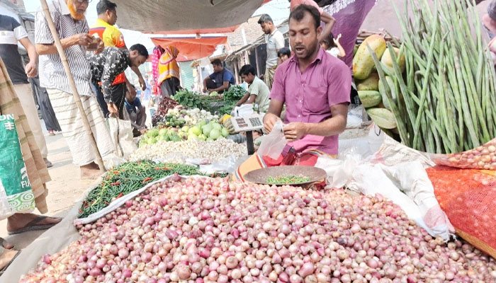 উপজেলার আড়মবাড়ীয়া বাজারে দেখা যায়, খুচরা সবজি ব্যবসায়ী রাব্বি পেঁয়াজ ৫ কেজি ১০০ টাকায় বিক্রি করছেন। এতে প্রতি কেজি পেঁয়াজ ২০ টাকায় বিক্রি হচ্ছে। তিনি জানান, পাবনার আতাইকুলা থেকে পেঁয়াজ কিনে পরিবহন খরচ বাদে মাত্র তিন টাকা লাভে বিক্রি করছেন।