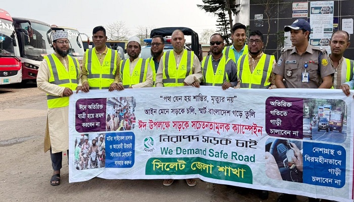 আসন্ন পবিত্র ঈদুল ফিতর উপলক্ষে নিরাপদ সড়ক নিশ্চিত করার লক্ষ্যে সিলেট কেন্দ্রীয় বাস টার্মিনালে সচেতনতামূলক ক্যাম্পেইন করেছে নিরাপদ সড়ক চাই (নিসচা) সিলেট জেলা শাখা।