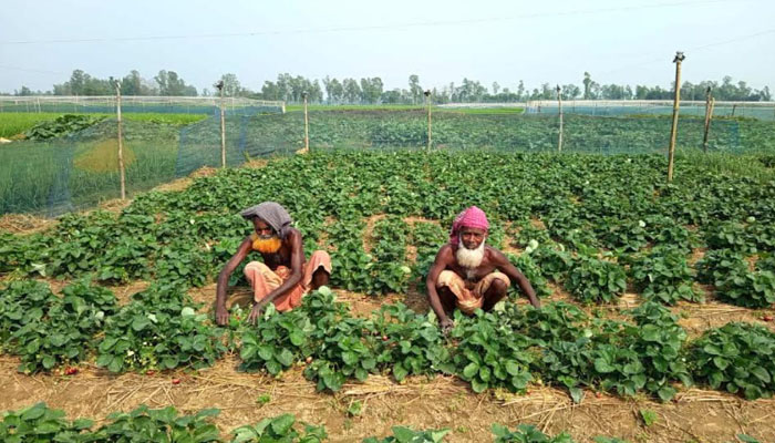 এবার এ ফল বাগান চাষে বাম্পার ফলন হয়েছে। খরচ কম লাভ বেশি এ ফল বাগান চাষে আগ্রহী হয়ে উঠেছে কৃষকেরা। এর মধ্যে সিরাজগঞ্জের উল্লাপাড়া উপজেলার বোয়ালিয়া পাগলা মন্ডলপাড়া গ্রামের আদর্শ কৃষক জহুরুল ইসলাম (৬১) প্রায় ১৫ বছর ধরে লাভজনক এ ফল বাগান চাষ করেছেন। এবার তিনি প্রায় আড়াই বিঘা জমিতে দেশি ও হাইব্রিড জাতের স্ট্রবেরি ফল বাগান চাষ করেছেন। প্রতিদিন ৪/৫ জন শ্রমিক এ বাগান পরিচর্যা করছে এবং পাখির উপদ্রব ঠেকাতে নেট ব্যবহার করতে হচ্ছে। জানুয়ারি মাসের শেষদিকে এ বাগান থেকে ফল উৎপাদন শুরু হয়েছে। প্রথমে এ ফল ১ হাজার টাকা কেজি এবং পরে ৮০০ টাকা থেকে ৬০০ টাকা কেজি বিক্রি করে। বর্তমানে ৫০০ টাকা থেকে ৪০০ টাকা কেজি বিক্রি করা হচ্ছে। বেশির ভাগ তার বাগান থেকেই পাইকারীরা এ ফল ক্রয় করে নিয়ে যান। ইতোমধ্যেই খরচ বাদে প্রায় ৩ লাখ টাকার ফল বিক্রি করা হয়েছে এবং আরো প্রায় ১ লাখ টাকার ফল বিক্রি করা হবে।