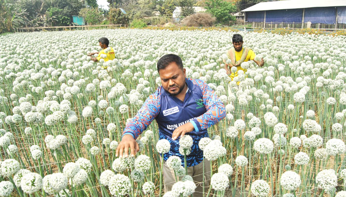 কয়েক দিন আগে তিনজন শ্রমিক নিয়ে তিনি আলতো করে হাতের স্পর্শে পেঁয়াজবীজের সঙ্গে কদমফুলের পরাগায়ন করেন। ভালো ফুল দেখে তিনি আশা করছেন, এবার ফলন ভালো হবে। তাঁর ধারণা, উৎপাদিত বীজ বিক্রি করে ১৩ থেকে ১৪ লাখ টাকা আয় করতে পারবেন।