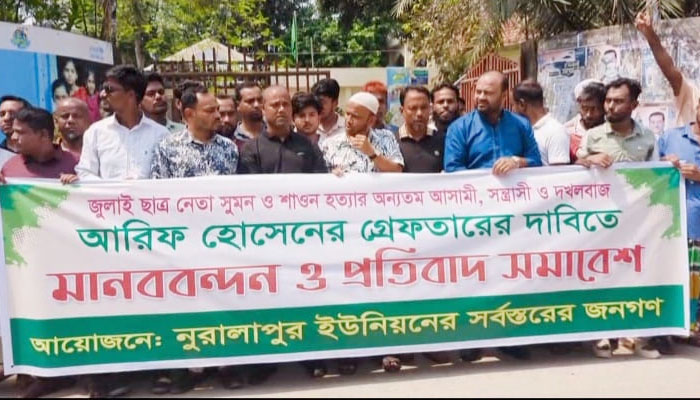বক্তারা বলেন, দীর্ঘদিন পলাতক থাকলেও আসামিদের গ্রেপ্তার করা সম্ভব হয়নি, যা আইনশৃঙ্খলা পরিস্থিতি নিয়ে প্রশ্ন তৈরি করছে।