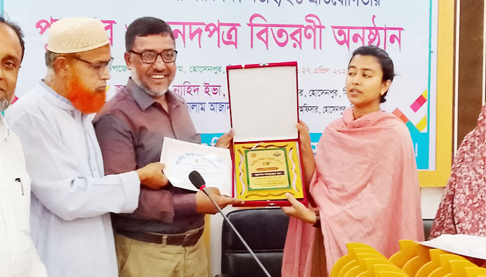 সোমবার (২৭ এপ্রিল) বেলা ১১টায় হোসেনপুর উপজেলা মাধ্যমিক শিক্ষা অফিসার মো. আবুল কালাম আজাদের সভাপতিত্বে এ উপলক্ষে পুরস্কার ও সনদপত্র বিতরণী অনুষ্ঠান অনুষ্ঠিত হয়। উক্ত অনুষ্ঠানে উপজেলা নির্বাহী অফিসার কাজী নাহিদ ইভা প্রধান অতিথি হিসেবে উপস্থিত ছিলেন।