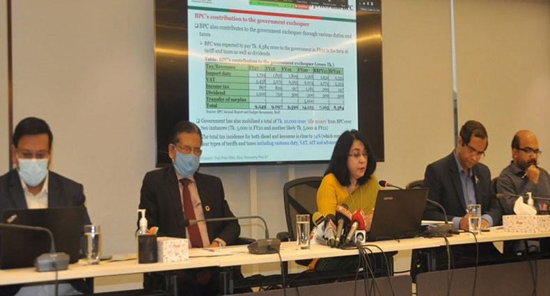 সংবাদ সম্মেলনে সিপিডির নির্বাহী পরিচালক ড. ফাহমিদা খাতুন, গবেষণা পরিচালক ড. খন্দকার গোলাম মোয়াজ্জেম, সিনিয়র রিসার্চ ফেলো তৌফিকুল ইসলাম খান উপস্থিত ছিলেন।