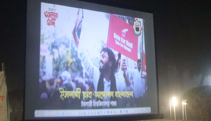 ইনকিলাব মঞ্চের মুখপাত্র শহিদ ওসমান হাদীর উক্তি ও বক্তব্যে'র ডকুমেন্টারি প্রদর্শন করেছে ইসলামী বিশ্ববিদ্যালয় শাখা ইসলামী ছাত্র আন্দোলন (ইছাআ)।