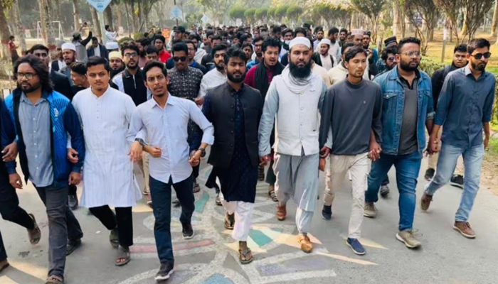সমাবেশে শিক্ষার্থীরা বলেন, ইসলামী বিশ্ববিদ্যালয়ের সেশনজটের অন্যতম প্রধান কারণ শিক্ষক সংকট। ৫ আগস্ট পরবর্তী অল্প পরিসরে হলেও শিক্ষক নিয়োগ কার্যক্রম চলমান রেখেছিল প্রশাসন। আজ জার্নালিজম বিভাগের নিয়োগ বোর্ড থাকলেও কাদের ইন্ধনে প্রশাসন স্থগিত করেছে তার স্পষ্ট জবাব দিতে হবে। আগামী জাতীয় নির্বাচনের পূর্বে স্বচ্ছতার সাথে নিয়োগ সম্পন্ন করতে হবে।