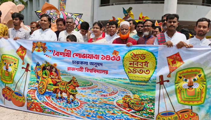 বৈশাখী শোভাযাত্রার উদ্বোধনী বক্তব্যে বিশ্ববিদ্যালয়ের উপাচার্য অধ্যাপক মো. ফরিদুল ইসলাম বলেন, বাংলাদেশের সমৃদ্ধ সংস্কৃতি ও ঐতিহ্যের মধ্যে বাংলা নববর্ষ অন্যতম। নববর্ষ আমাদের অতীতের দুঃখ, গ্লানি ও হতাশা ভুলে নতুন আশা ও উদ্দীপনায় সামনে এগিয়ে যাওয়ার প্রেরণা জোগায়। প্রতি বছরের মতো এবারও চারুকলা বিভাগ বর্ষবরণ উপলক্ষে বর্ণাঢ্য আয়োজন করেছে। শোভাযাত্রা, র্যালি ও নানা সাংস্কৃতিক কর্মসূচির মধ্য দিয়ে উদযাপিত হচ্ছে এই উৎসব।