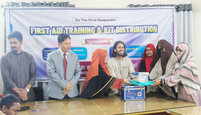 এসময় রাজশাহী বিশ্ববিদ্যালয় (রাবি) মেডিকেল সেন্টারের প্রধান চিকিৎসকের মাধ্যমে ফার্স্ট এইড প্রশিক্ষণ দেওয়া হয়।