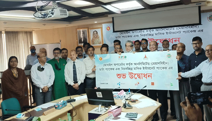 মোবাইলের আনলিমিটেড (মেয়াদ-বিহীন) ডাটা প্যাকেজ এবং নিরবচ্ছিন্ন মাসিক ইন্টারনেট প্যাকেজের উদ্বোধন করেছেন ডাক ও টেলিযোগাযোগ মন্ত্রী মোস্তাফা জব্বার।