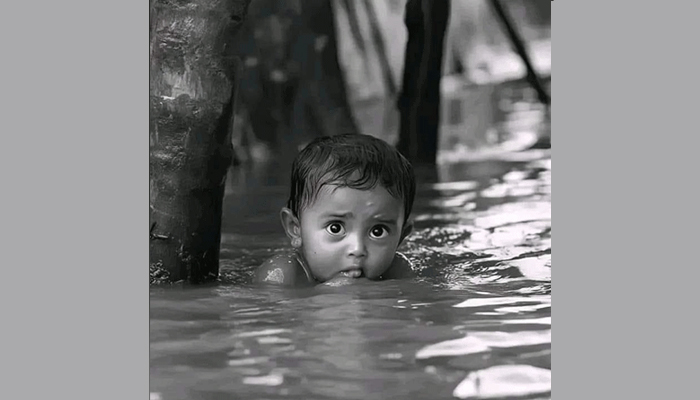 সম্প্রতি বন্যায় ক্ষতিগ্রস্ত ও দুর্দশাগ্রস্ত মানুষের অনেক চিত্র ছড়িয়ে পড়েছে সামাজিক যোগাযোগ মাধ্যমে। এরমধ্যে বিশেষ একটি ছবি সবার নজর কেড়েছে। ছবিতে একটি শিশুকে বন্যার পানির মধ্যে অর্ধ নিমজ্জিত অবস্থায় দেখা গেছে। সাদাকালো এই ছবিটি কোনো আলোকচিত্রীর ধারণ করা নয়। ছবিটি আসলে কৃত্রিম বুদ্ধিমত্তা বা আর্টিফিশিয়াল ইন্টেলিজেন্স (এআই) দিয়ে তৈরি।