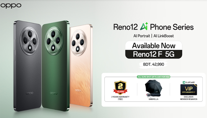 শীর্ষস্থানীয় আন্তর্জাতিক স্মার্টফোন প্রযুক্তি প্রতিষ্ঠান অপো বাংলাদেশের বাজারে সর্বাধুনিক মডেল অপো রেনো১২ এফ ৫জি উন্মোচন করেছে। এর মাধ্যমে এআই প্রযুক্তির প্রয়োগে নতুন মাত্রা যোগ করেছে প্রতিষ্ঠানটি। উন্নত এআই ফিচার ও অসাধারণ অভিজ্ঞতা দেওয়ার প্রতিশ্রুতি নিয়ে দেশের বাজারে আসা ৪২,৯৯০ টাকা মূল্যের এই ডিভাইসটি বহুল প্রশংসিত রেনো১২ সিরিজের নতুন সংযোজন।