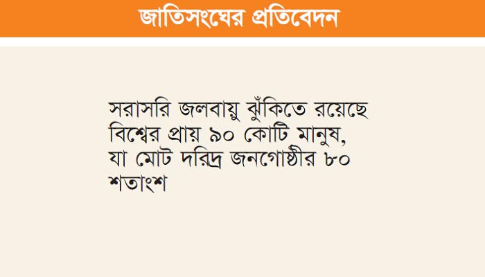 জলবায়ু পরিবর্তনের কারণে সৃষ্ট প্রাকৃতিক বিপর্যয়ের কারণে বিশ্বের ১০৯টি দেশের ৬৩০ কোটি মানুষের মধ্যে ১১০ কোটি মানুষ (প্রায় ১৮ শতাংশ) চরম বহুমাত্রিক দারিদ্র্যে ভুগছে। সরাসরি জলবায়ু ঝুঁকিতে রয়েছে বিশ্বের প্রায় ৯০ কোটি মানুষ যা মোট দরিদ্র জনগোষ্ঠীর ৮০ শতাংশ। গতকাল শুক্রবার অক্সফোর্ড বিশ্ববিদ্যালয়ের সঙ্গে যৌথভাবে জাতিসংঘের উন্নয়ন কর্মসূচি (ইউএনডিপি) প্রকাশিত প্রতিবেদনে এমন তথ্য উঠে এসেছে।