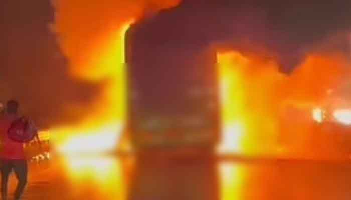 মোটরসাইকেলের সঙ্গে সংঘর্ষে বাসে আগুন, নিহত ২০