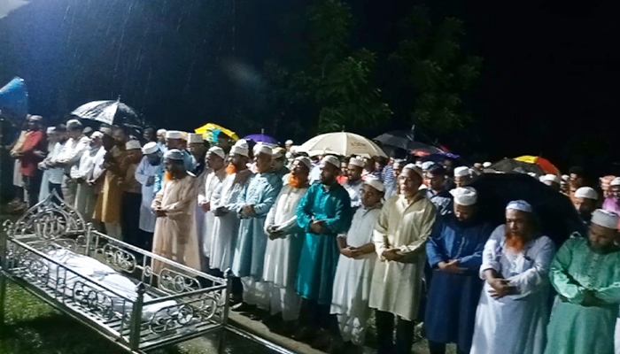 বুধবার (২৫ সেপ্টেম্বর) রাতে বাদ এশা চাঁদপুর সদর উপজেলার লক্ষীপুর মডেল ইউনিয়নের লক্ষীপুর গ্রামের ওয়াজিহিয়া হাফিজিয়া নূরানী মাদ্রাসা প্রাঙ্গনে নামাজে জানাজা শেষে দাফন করা হয়েছে।