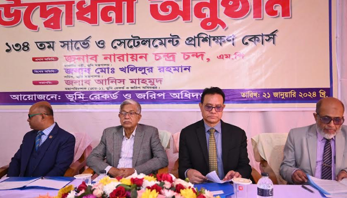রোববার সাভারে অবস্থিত অফিসার্স ট্রেনিং ইন্সটিটিউটের (ওটিআই) মসজিদ সংলগ্ন মাঠে যৌথ ক্যাম্পে ভূমি রেকর্ড ও জরিপ অধিদপ্তর (ডিএলআরএস) কর্তৃক আয়োজিত ১৩৪তম সার্ভে এন্ড সেটেলমেন্ট প্রশিক্ষণ কোর্সের উদ্বোধনী অনুষ্ঠানে প্রধান অতিথির বক্তব্যে ভূমিমন্ত্রী এসব কথা বলেন। এসময় ভূমি সচিব মো. খলিলুর রহমান বিশেষ অতিথি হিসেবে উপস্থিত ছিলেন।