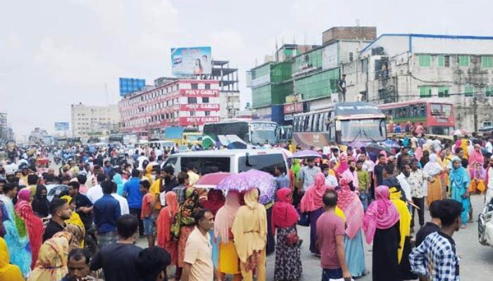 গাজীপুরে সড়ক অবরোধ করে কারখানা শ্রমিকদের বিক্ষোভ