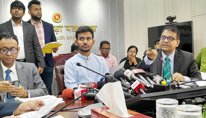 এ সময় যুব ও ক্রীড়া মন্ত্রণালয়ের উপদেষ্টা আসিফ মাহমুদ সজীব ভূঁইয়া উপস্থিত ছিলেন।