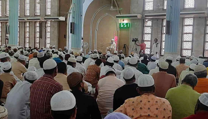 নামাজের আগে ইমাম হাফেজ মুফতি মাওলানা মুহিববুল্লাহিল বাকী উপস্থিত মুসল্লিদের উদ্দেশ্যে নসীহত করে বয়ান করেন।