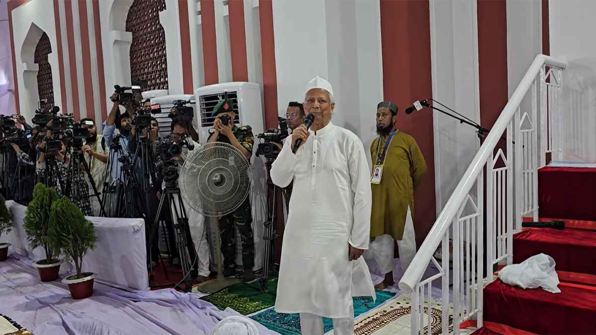 প্রধান উপদেষ্টা বলেন, আজকে বাংলাদেশের প্রতিটি গ্রামে প্রতিটি বাজারে প্রতিটি গঞ্জে শহরে ঈদের জামাত অনুষ্ঠিত হচ্ছে। যারাই যেখানে ঈদের জামাতে শরিক হয়েছেন সবাইকে ঈদ মোবারক জানাচ্ছি। যারা ঈদের জামাতে শরিক হওয়ার সুযোগ পাননি তাদেরও ঈদ মোবারক। আমাদের মা-বোনেরা যারা ঘরে আছেন তাদেরও ঈদ মোবারক। আমাদের প্রবাসী শ্রমিকেরা যারা সারা বছর কষ্ট করেছেন আমরা জাতির পক্ষ থেকে তাদেরও ঈদ মোবারক জানাচ্ছি। যারা হাসপাতালে আছেন, রোগী, তাঁদেরও ঈদ মোবারক।