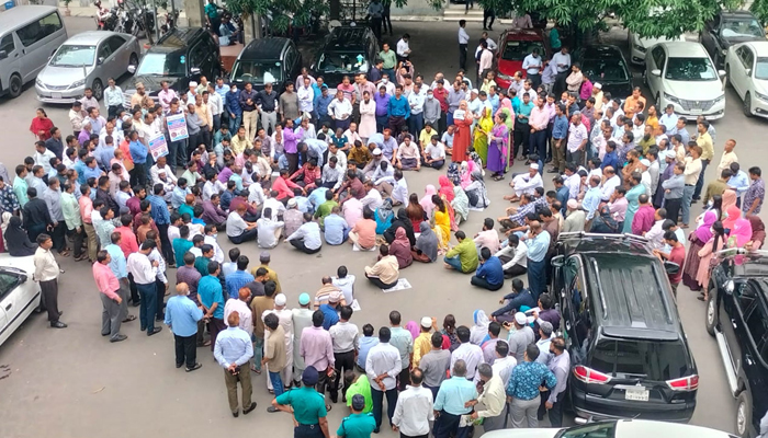 বৃহস্পতিবার (১৯ জুন) বেলা সাড়ে ১১টার দিকে সচিবালয়ের ৪ নম্বর ভবনের সামনে সমবেত হয়ে সেখানেই বসে পড়েন তারা।