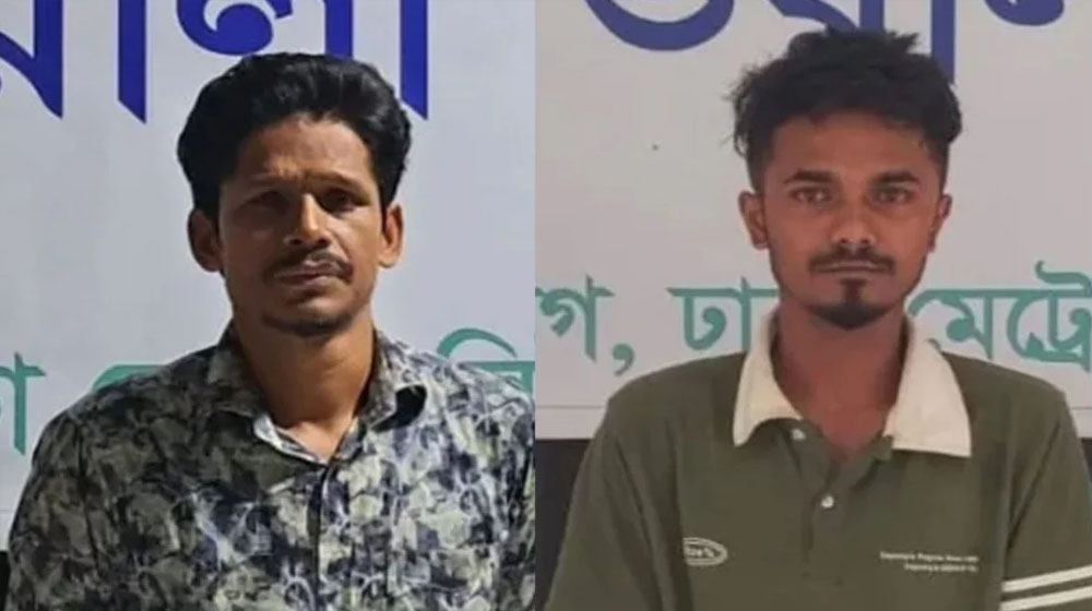 পুলিশের হাতে গ্রেপ্তার দুইজন হলেন মাহমুদুল হাসান মহিন (৪১) ও তারেক রহমান রবিন (২২)। গ্রেপ্তার তারেকের কাছ থেকে একটি বিদেশি পিস্তল জব্দ করা হয়েছে।