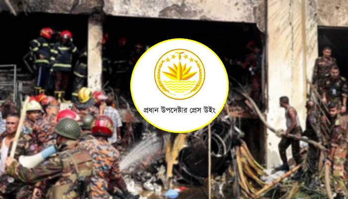 রাজধানীর উত্তরায় মাইলস্টোন স্কুল অ্যান্ড কলেজে বিমান বিধ্বস্তের ঘটনায় ‘বিভিন্ন মহল থেকে হতাহতের তথ্য গোপন করা হচ্ছে দাবি করে অপপ্রচার চালানো হচ্ছে’ বলে জানিয়েছে প্রধান উপদেষ্টার প্রেস উইং।