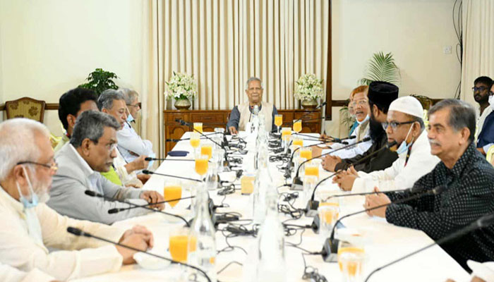 বাংলাদেশ জাতীয়তাবাদী দল (বিএনপি), জামায়াতে ইসলামী, এনসিপি ও ইসলামী আন্দোলন বাংলাদেশের নেতাদের সঙ্গে বৈঠকে বসেছেন অন্তর্বর্তী সরকারের প্রধান উপদেষ্টা ড. মুহাম্মদ ইউনূস।