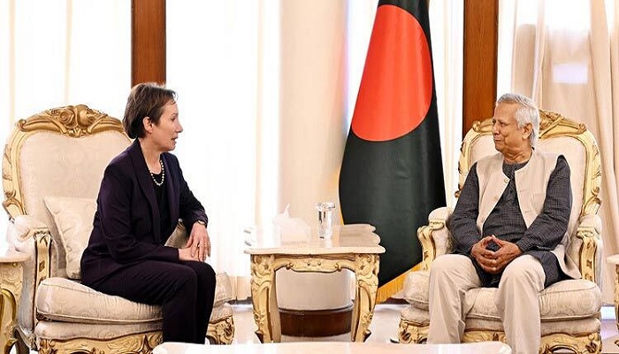 প্রেস সচিব বলেন, আজ যুক্তরাষ্ট্রের রাষ্ট্রদূত ট্রেসি অ্যান জ্যাকবসন প্রধান উপদেষ্টার সঙ্গে একটি সৌহার্দ্যপূর্ণ বৈঠকে মিলিত হয়েছিলেন। বৈঠকে যুক্তরাষ্ট্রের পাল্টা শুল্ক, বাংলাদেশের কাউন্টার টেরোরিজম, জাতীয় নির্বাচনের প্রস্তুতি, ঐকমত্য কমিশনের সংলাপগুলো নিয়ে কথা হয়েছে।