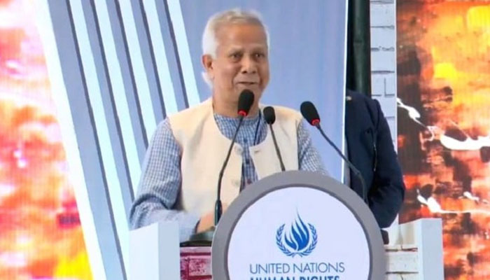 প্রধান উপদেষ্টা বলেন, ‘গত বছরের সেই ঐতিহাসিক মুহূর্তে লক্ষ লক্ষ বাংলাদেশি নারী ও পুরুষ- বিশেষত তরুণরা মানবাধিকার লঙ্ঘনের বিরুদ্ধে রুখে দাঁড়িয়ে নিজেদের মর্যাদা ও ভবিষ্যৎ পুনরুদ্ধার করেছিল। তাদের সাহস শুধু বাংলাদেশের পক্ষেই নয়, গোটা মানবতার পক্ষেও কথা বলেছে।’