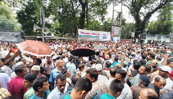 এর আগে, জাতীয়করণের দাবিতে সকাল থেকেই জাতীয় প্রেস ক্লাবের সামনে জড়ো হন হাজারো শিক্ষক ও কর্মচারী। সকাল সাড়ে ১০টার দিকে এমপিওভুক্ত শিক্ষা জাতীয়করণপ্রত্যাশী জোট’-এর ব্যানারে সমাবেশ শুরু হয়। ঘোষিত কর্মসূচি অনুযায়ী- দুপুরে সচিবালয় অভিমুখে পদযাত্রা কর্মসূচি করার কথা ছিলো শিক্ষকদের। তবে দুপুর দেড়টার দিকে সমাবেশস্থল থেকে ১০ জন শিক্ষক নেতা সচিবালয়ে যান। তারা শিক্ষা উপদেষ্টা ড. সি আর আবরার ও মন্ত্রণালয়ের কর্মকর্তাদের সঙ্গে বৈঠক করেন।