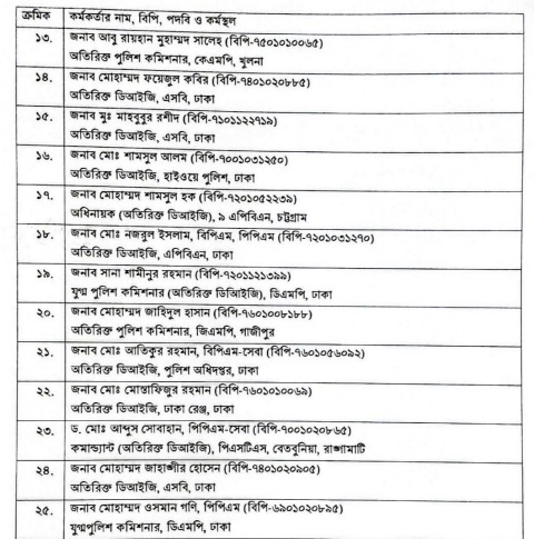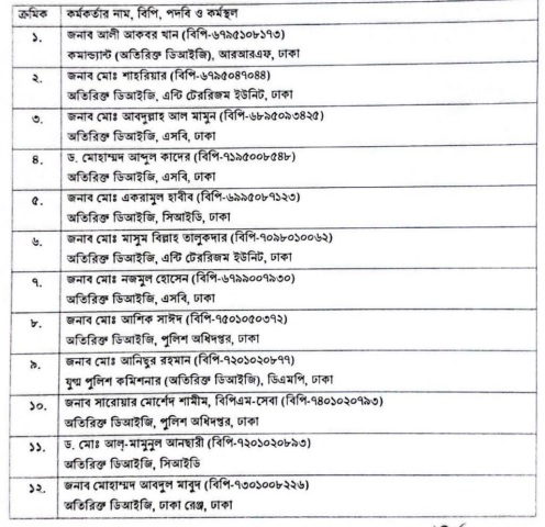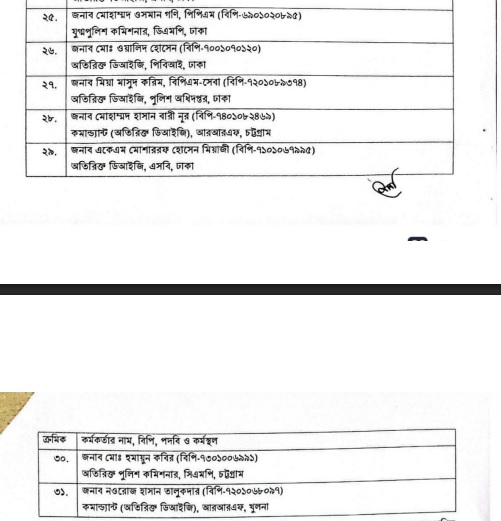 পদোন্নতি পাওয়া ৩১ পুলিশ কর্মকর্তাদের তালিকা—