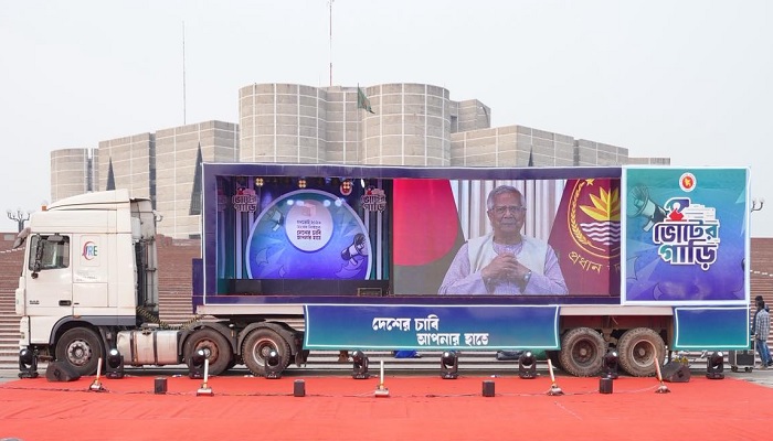 আসন্ন ত্রয়োদশ সংসদ নির্বাচন, গণভোট এবং জুলাই জাতীয় সনদের বিষয়ে সারাদেশে প্রচারণার লক্ষ্যে যাত্রা শুরু করেছে দশটি ভোটের গাড়ি— সুপার ক্যারাভান।
