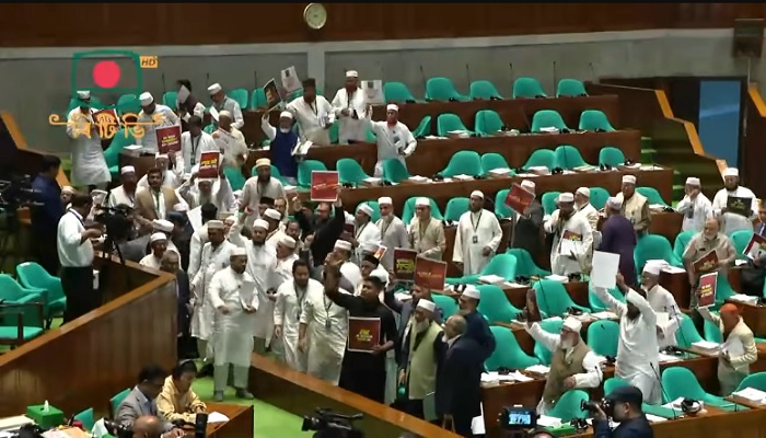 রাষ্টপতির ভাষণ শুরু হলে জামায়াত ও এনসিপির সদস্যরা বিভিন্ন স্লোগান দিতে দিতে সংসদ কক্ষ ত্যাগ করেন। এসময় তারা ‘ভারতের দালালেরা হুঁশিয়ার সাবধান’সহ নানা স্লোগান দেন।