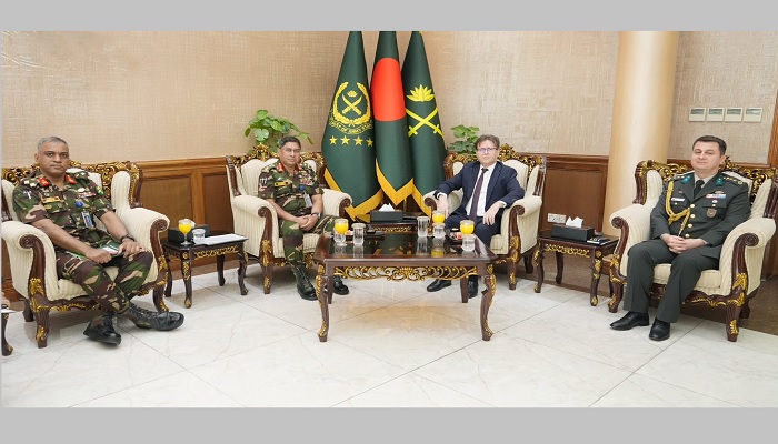 সেনাবাহিনী প্রধান জেনারেল ওয়াকার-উজ-জামানের সঙ্গে সৌজন্য সাক্ষাৎ করেছেন বাংলাদেশে নিযুক্ত তুরস্কের রাষ্ট্রদূত রামিস সেনের নেতৃত্বে একটি প্রতিনিধিদল।