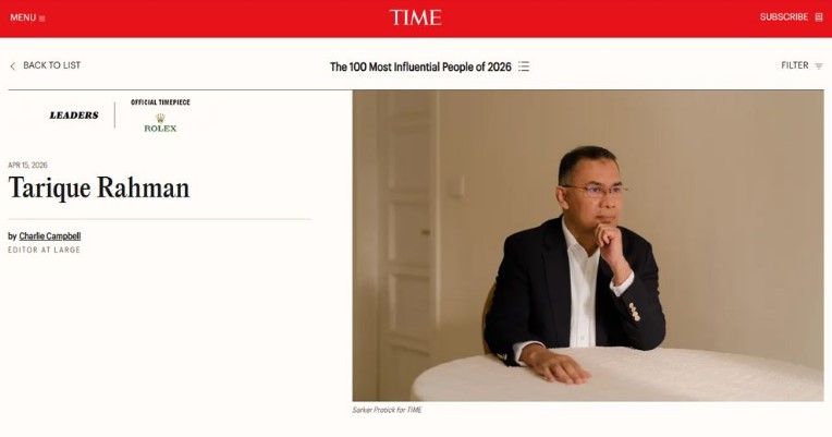 প্রখ্যাত মার্কিন সাময়িকী টাইম এর ২০২৬ সালের বিশ্বের সবচেয়ে প্রভাবশালী ১০০ ব্যক্তির তালিকায় স্থান করে নিয়েছেন বাংলাদেশের প্রধানমন্ত্রী তারেক রহমান।