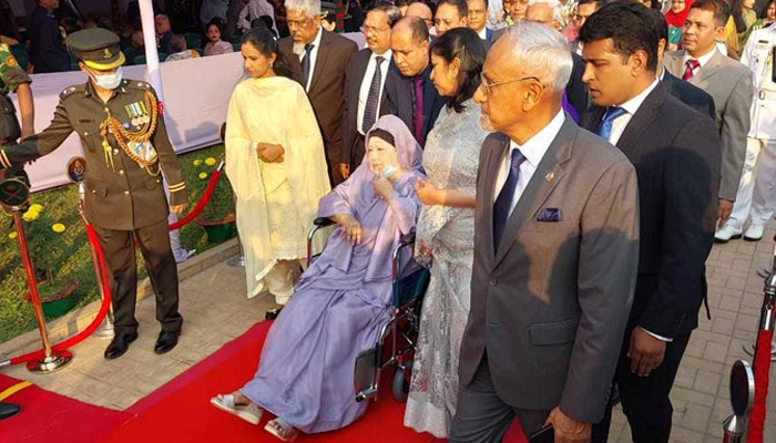 সশস্ত্র বাহিনী দিবসের সংবর্ধনা অনুষ্ঠানে যোগ দিতে সেনাকুঞ্জে পৌঁছেছেন বিএনপি চেয়ারপারসন খালেদা জিয়া। ২০১২ সালের পর এই প্রথম সশস্ত্র বাহিনী দিবসের অনুষ্ঠানে সেনাকুঞ্জে যোগ দিলেন তিনি।