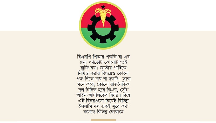 সরকারের ঘোষিত সময় অনুযায়ী আসন্ন ত্রয়োদশ সংসদ নির্বাচনের আর ৫ মাসেরও কম সময় বাকি আছে। এরইমধ্যে জুলাই সনদের ভিত্তিতে আগামী ফেব্রুয়ারির মধ্যে নির্বাচন, আনুপাতিক বা পিআর পদ্ধতির নির্বাচন, লেভেল প্লেয়িং ফিল্ড নিশ্চিত করা, আওয়ামী লীগের বিচার এবং জাতীয় পার্টিকে নিষিদ্ধ করা- এসব দাবিতে একই দিনে সাতটি দল কর্মসূচি পালন করেছে। সেই দলগুলো হলো- বাংলাদেশ জামায়াতে ইসলামী, ইসলামী আন্দোলন বাংলাদেশ, খেলাফতে মজলিসের দুটি অংশ, নেজামে ইসলাম, খেলাফত আন্দোলন ও জাতীয় গণতান্ত্রিক পার্টি-জাগপা। দলগুলো যেসব দাবিতে সরকারকে চাপ দিতে রাজপথে নেমেছে সেগুলো নিয়ে বিরোধিতা হচ্ছে মূলত বিএনপির সঙ্গে। কারণ জুলাই সনদের ভিত্তিতে আগামী ফেব্রুয়ারির মধ্যে নির্বাচন, পিআর পদ্ধতিতে ভোট, জাতীয় পার্টিকে নিষিদ্ধ করার মতো বিষয়গুলোতে ভিন্নমত আছে বিএনপির। দলটি মনে করে- যেসব বিষয়ে ঐকমত্য হচ্ছে না, সেগুলো নিয়ে রাজনৈতিক দলগুলোকে ভোটের মাঠে ‘জনগণের কাছে যেতে হবে’। আর সংস্কারের যেসববিষয় বাকি থাকবে সেগুলো পরবর্তী সংসদে উঠবে। এছাড়া বিএনপি পিআর পদ্ধতি বা এর জন্য গণভোট কোনোটাতেই রাজি নয়। জাতীয় পার্টিকে নিষিদ্ধ করার বিষয়েও কোনো পক্ষ নিতে চায় না দলটি। তারা মনে করে, কোনো রাজনৈতিক দল নিষিদ্ধ হবে কি-না, সেটা আইন-আদালতের বিষয়। কিন্তু এই বিষয়গুলো নিয়েই বিভিন্ন ইসলামি দল একই সুরে কথা বলেছে বিভিন্ন ফোরামে। শেষ পর্যন্ত রাজপথের কর্মসূচিও পালন করেছে। আর এই বিষয়গুলো ঘটছে, এমন এক সময়ে যখন সরকার ঘোষিত নির্বাচনের বাকি আছে পাঁচ মাসেরও কম। নির্বাচন হতে হলে নির্বাচন কমিশনকে তিন মাস পরই তফসিল ঘোষণার দিকে যেতে হবে। অনেকেই মনে করছেন, জামায়াতসহ বিভিন্ন রাজনৈতিক দল একজোট হয়ে মূলত বিএনপির বিপরীতে একটা বড় রাজনৈতিক শক্তি হিসেবে নিজেদের দৃশ্যমান করতে চাইছে। অর্থাৎ আন্দোলনের মাধ্যমে একটা রাজনৈতিক জোট গড়া, যার টার্গেট বিএনপি।