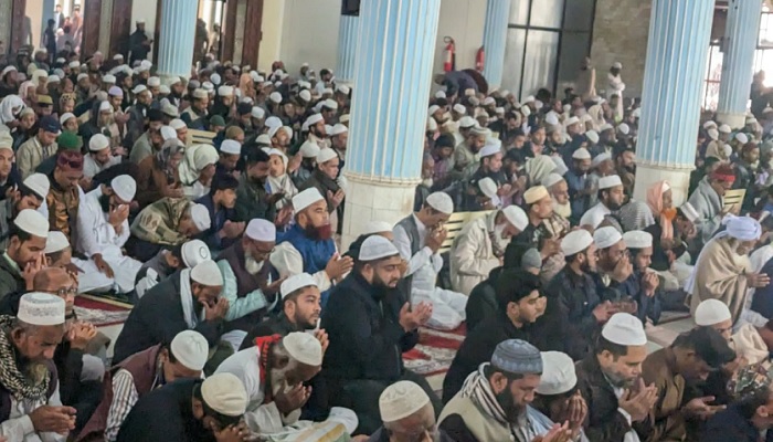 বিএনপি চেয়ারপারসন ও সাবেক প্রধানমন্ত্রী বেগম খালেদা জিয়ার রুহের মাগফিরাত কামনায় জাতীয় মসজিদ বায়তুল মোকাররমে জুমার নামাজ শেষে বিশেষ দোয়া অনুষ্ঠিত হয়েছে। দোয়ায় মুসল্লি ও সাধারণ মানুষ অংশ নেন।
