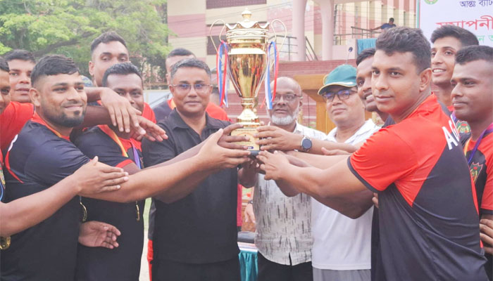 খেলা শেষে বিজয়ী ও রানার্সআপ দলের হাতে ট্রফি তুলে দেন অতিথিবৃন্দ।